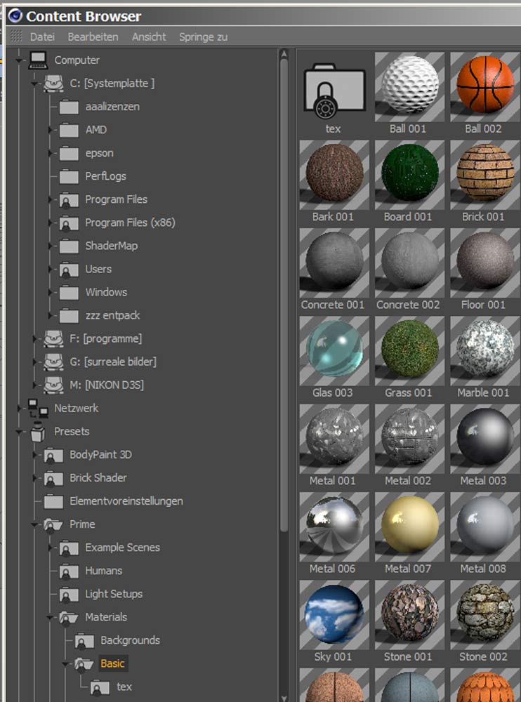 Auch schau mal ob man sich nicht unter Datei im Contentbrowser selber Verzeichnisse erstellen kann unter Presets Materialen ? Hab zwar kein Cinema aber das fällt mir jetzt so ein wenn ich die Screenshots sehe