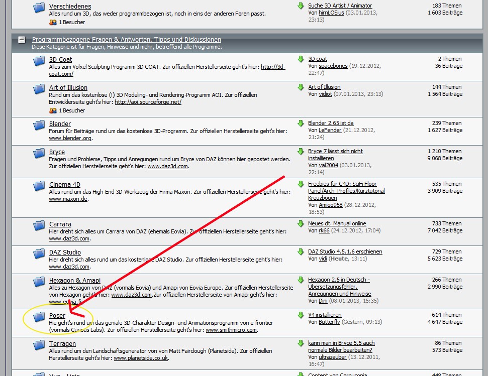 Überhaupt bin ich etwas enttäuscht, dass ich mit der teuren POSER 2012 PRO deutsch -Version so große Anlaufprobleme habe, während ich mit DAZ 4.5. (englisch) innerhalb weniger Tage zu ansehnlichen Ergebnissen kam. Das gleiche gilt für das DAZ Forum, das mir bei Problemen innerhalb weniger Stunden weiterhilft.