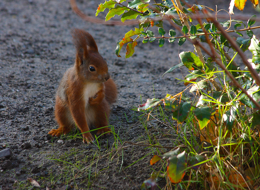 Ich konnte das Hörnchen vom Balkon aus, gut versteckt hinter der Einfassung, fotografieren.