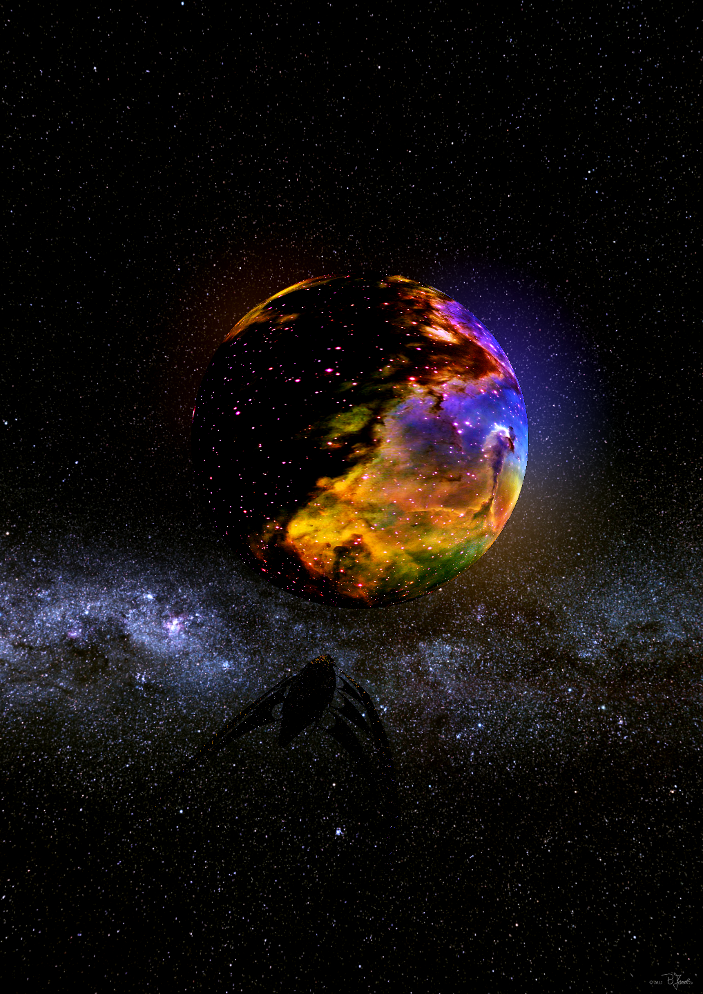 hihi yep Kontrastprogramm aus einer Spielerei entstanden.... das ist eigentlich kein Planet, sondern eben ein weiteres Universum in Kugelform..lol... jedenfalls ist die Kugel mit einem Bild der Nasa vom Krebsnebel belegt