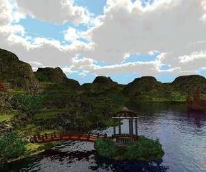 , aber irgendwie fehlt die Tiefe oder anders ausgedrückt Himmel+Wolken interagieren nicht mit dem Terrain und Wasser.