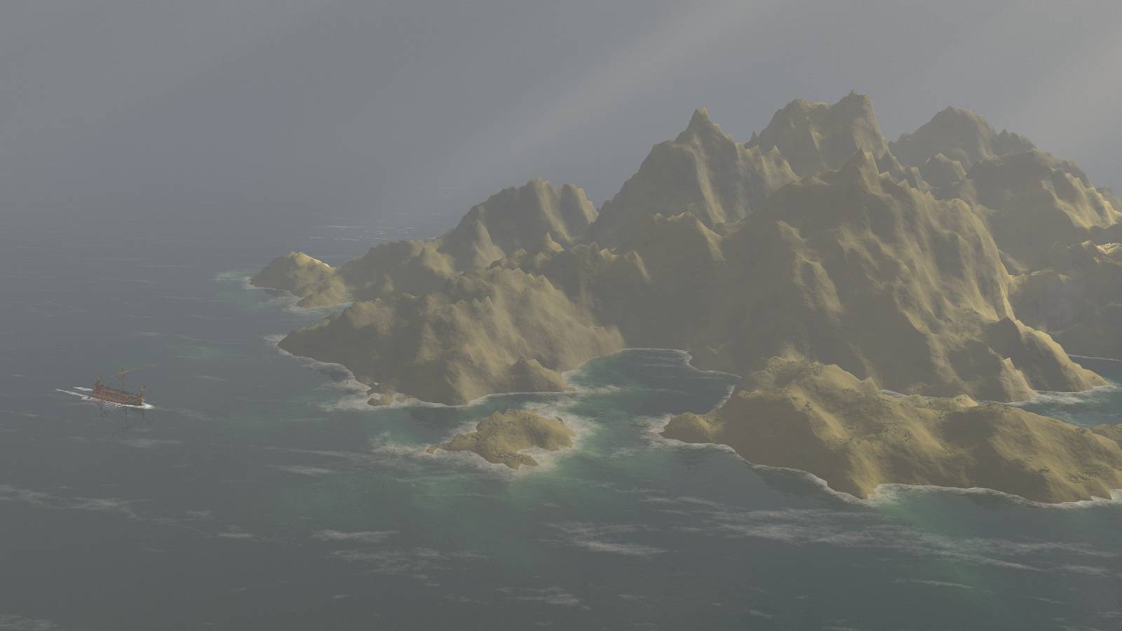 Und hier ist das erste Leistungtestbild. Man beachte die Küstenlinie. Die Schäumung wird automatisiert berechnet und ist animierbar. ![]()