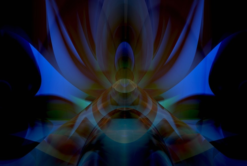 Dieses Mal sind es 2 riesige Kegel, wobei der 2. auf den Kopf gestellt wurde. Das Material ist spiegelndes Metall mit etwas Transparenz und reduzierter Lichtbrechung. Gerendert wurde 360° Panorama. Die Kamera habe ich über den Trackball nach Gefühl gedreht, bis mir der Effekt gefiel und sie befindet sich in den Objekten.