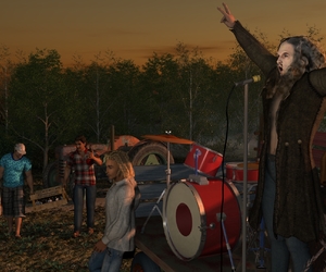 Der Traktor ist von DAZ, einige Bäume auch. Den Anhänger habe ich aus Einzelteilen zusamengebaut. Ich halte nichts von Texturen, die Bretter vorgauckeln. Oder Mauern. Besser sind dann doch einzelne Bretter und Steine, die man entsprechend zusammen fügt.