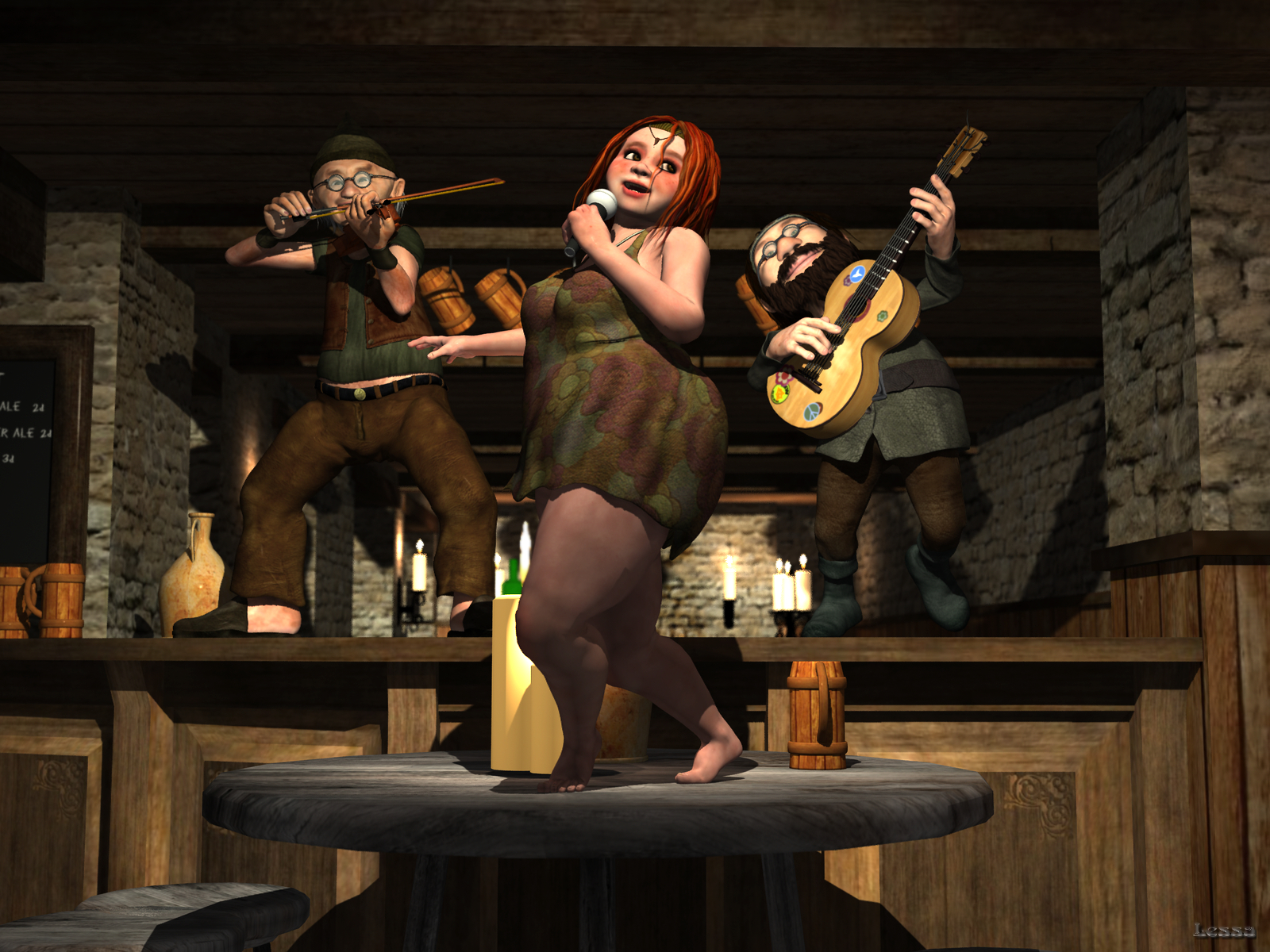 Die Beleuchtung ist gut geworden, für mich immer das Schwerste in einer Szene. Vielleicht noch mehr diffuse Schatten? Wegen der vielen Kerzen?