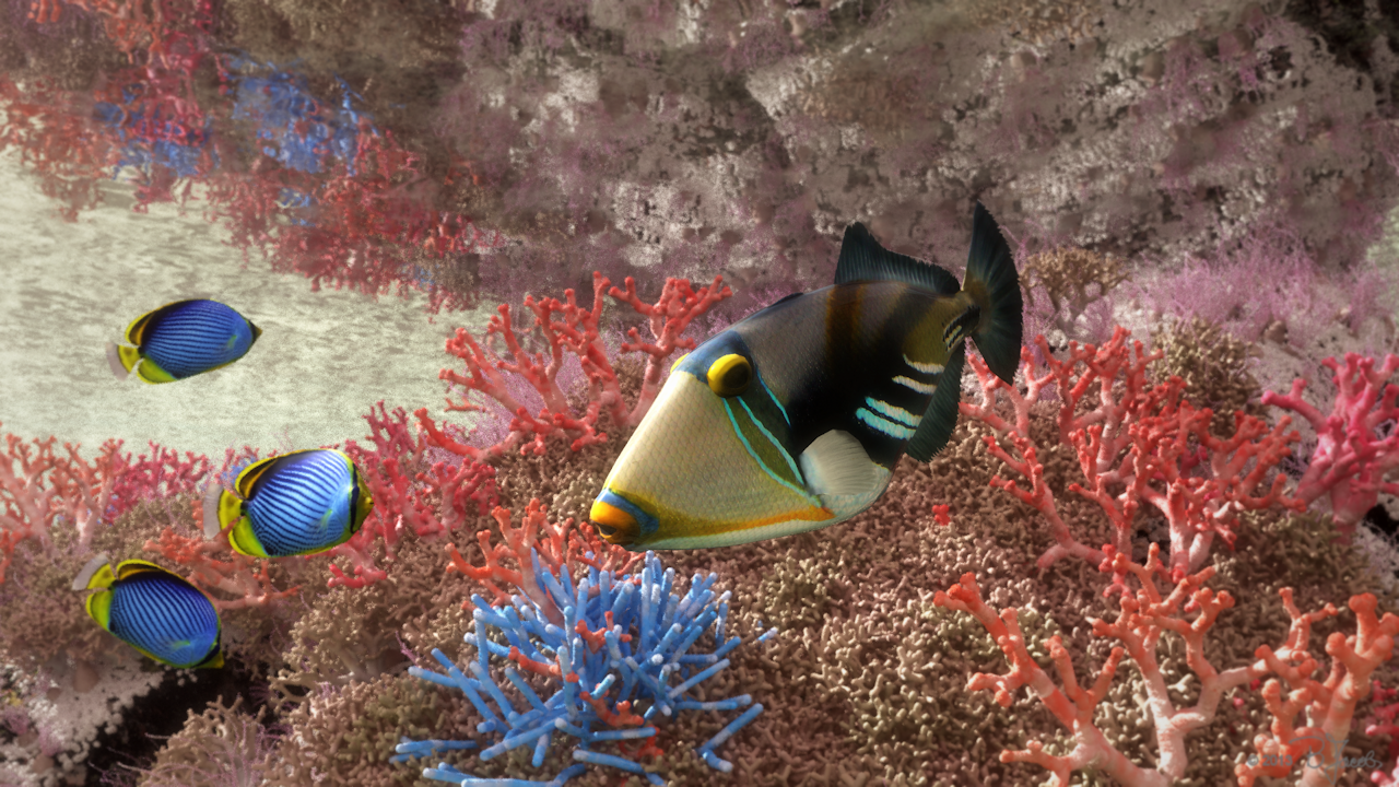 Es ist nur schade, dass der Drückerfisch am Auge und an der Seitenflosse Polygonkanten hat. Vielleicht mal mit PW rangehen oder in Vue glätten.