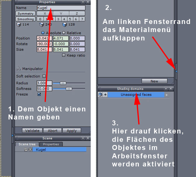 dann bearbeiten."Lege in Hex unterschiedliche Shading Domains für die beiden Objekte fest"