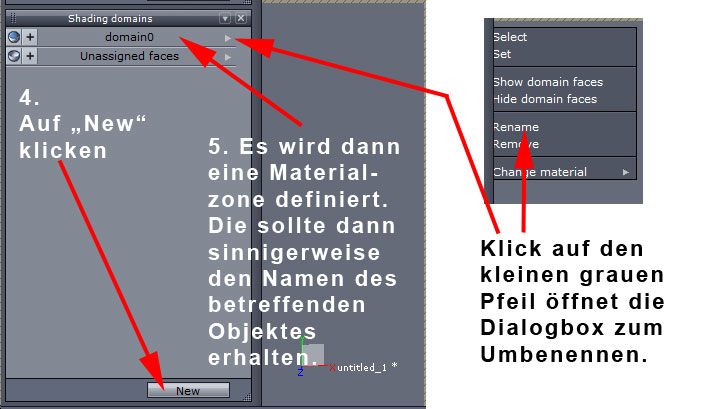 b) Lege in Hex unterschiedliche Shading Domains für die beiden Objekte fest und exportiere beide gemeinsam -> du hast nun in Poser ein Objekt mit zwei Materialzonen, die du unterschiedlich texturieren kannst.
