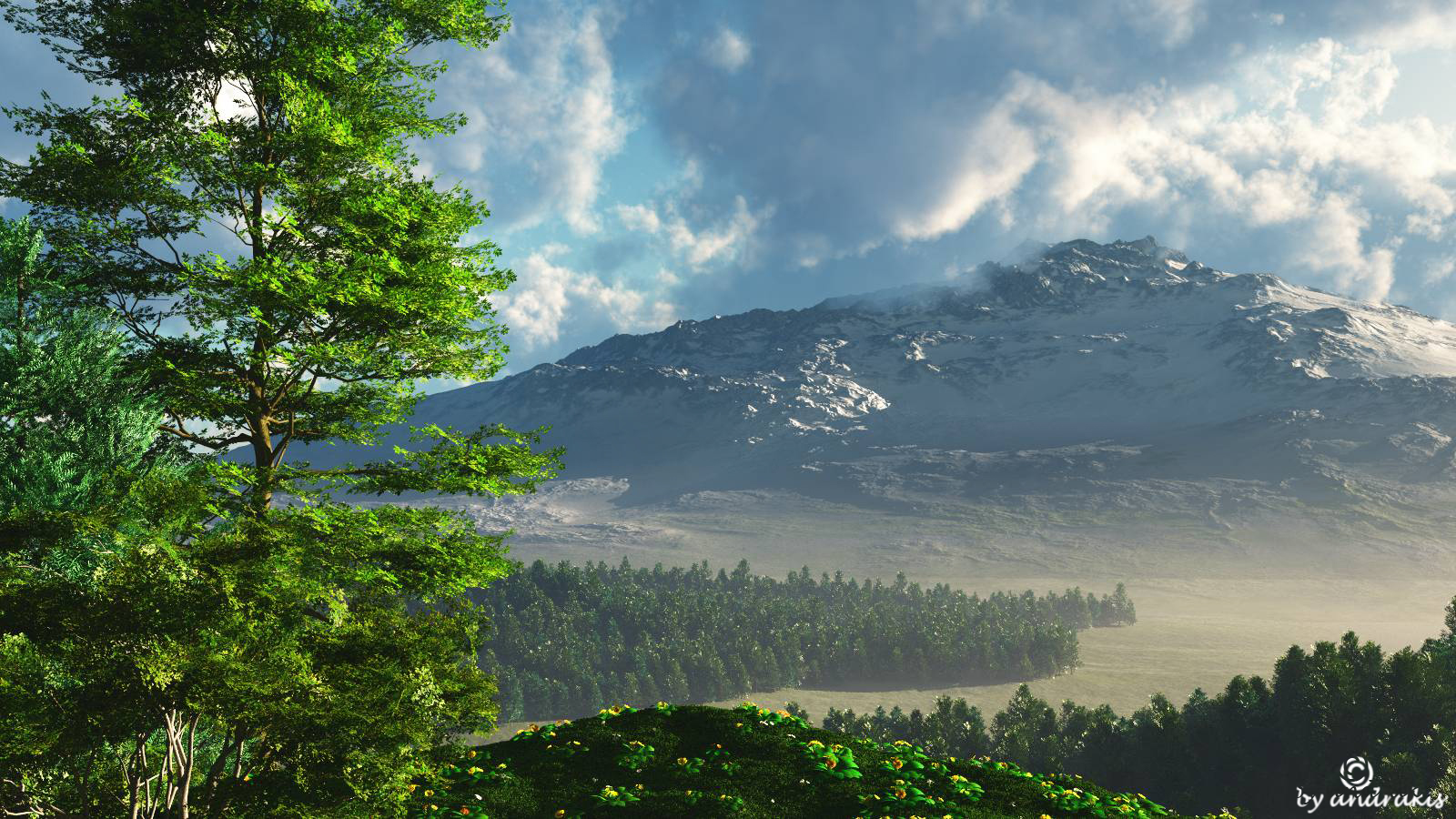 Bei der Zwischenebene mit dem Baumbewuchs von links in die Mitte bis leicht rechts könnten die Bäume ruhig kleiner sein, dann hätte diese Ebene mehr Tiefe und die Berge kämen so richtig majestätisch rüber.