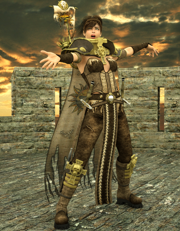 Bei weiterer Betrachtung des Vorschaurenders fällt auf, das vor allem die metallischen Gegenstände noch etwas Bearbeitung bedürfen (Bild 7). Es empfiehlt sich generell über alle prominent sichtbaren Materialien zu scannen und diese gegebenfalls zu überarbeiten. Die Copy & Paste Funktion ist hierbei sehr hilfreich. Außerdem lassen sich einzelne Materialien, oder aber auch alle Materialien einer Figur exportieren um sie dann später wieder zu benutzen. Dies benutze ich zum Beispiel um meinen komplexen Skin-Shader für die Figuren zu laden.