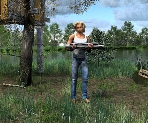 Zum ersten Mal habe ich die CARRARA-eigenen Wolken verwendet, die strecken die Renderzeit enorm. Und das Ergebnis sieht man leider erst nach dem Rendern. So haben die Wolken eine platte Unterseite. Ich weiß allerdings noch nicht, wie ich das in den Griff bekomme. Hier im Bild passt diese bedrohliche Wirkung vielleicht ganz gut. Denn das Picknick endet sehr unschön.