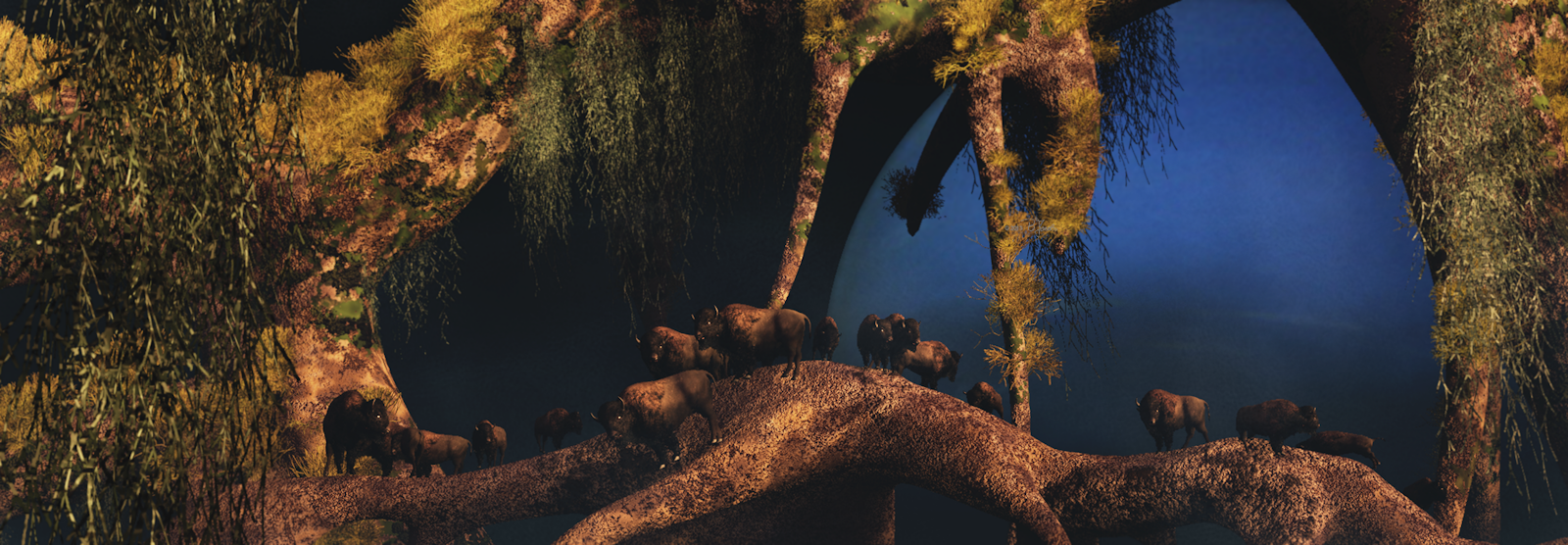 Eine kleine Spielerei mit einer selbstgeschöpften Sculptriswurzel, Moosen von Wabe und Martin Frost und dem Bison von DAZ ![]()