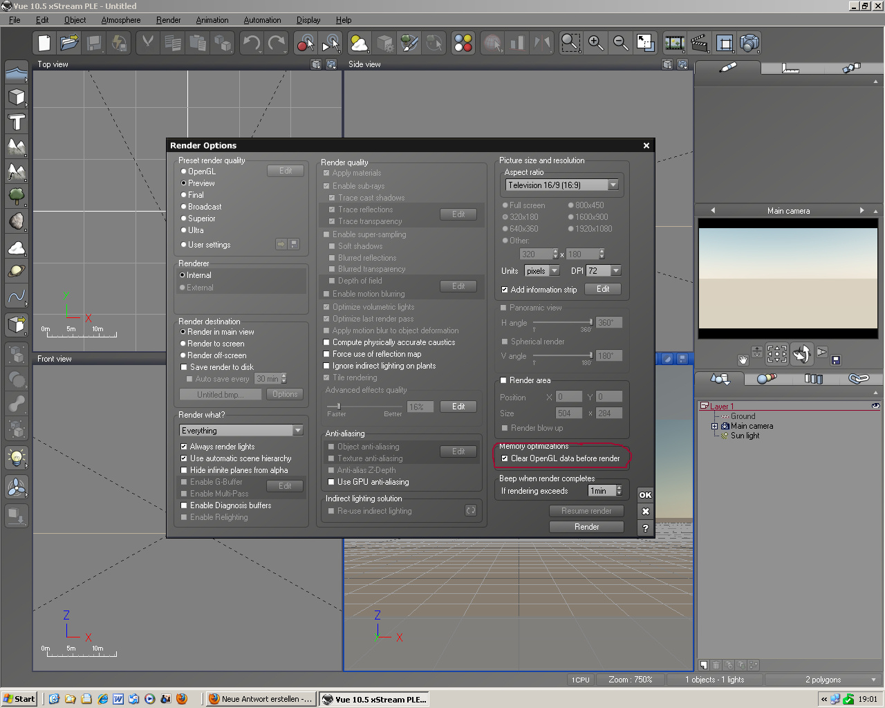 Seit fast zwei Wochen bastel ich jetzt schon an einem Bild der Titanic, wozu ich mir bei Cornucopia das Model dazu gekauft habe. Gerendert wird über die Render-Cow auf dem Rechner von meinem Freund. Ich musste die Vue-Szene bis jetzt ein paarmal öffnen und immer wieder einen Render anstoßen, weil mir was am Licht nicht gefallen hat oder das Material der Eisberge nach dem Rendern sehr komisch aussah.