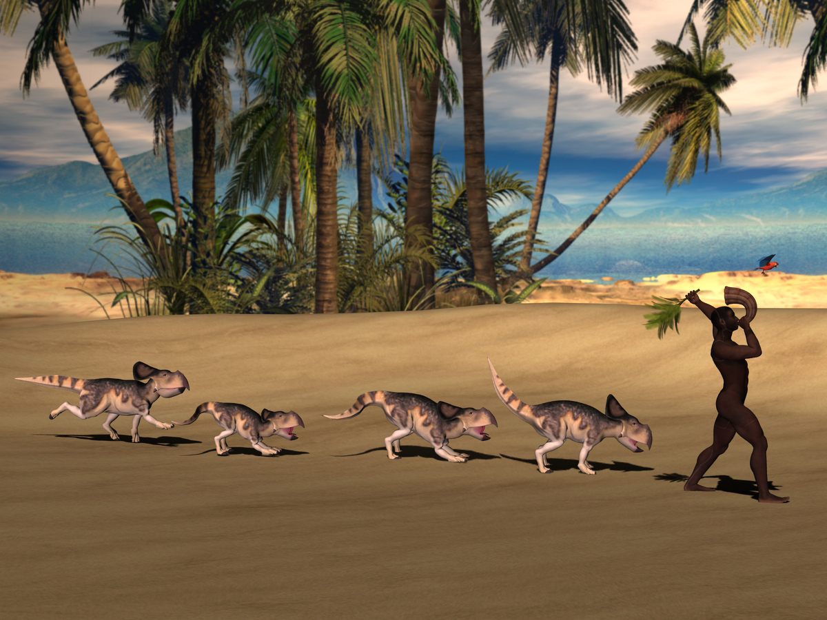 Verwendete(s) Programm(e): DS 4.6 mit M4 mit Homo-Erectus-Morph (den man leider auf die Entfernung nicht so sieht). Protoceratops (eine der wenigen Dinobezeichnungen die ich aussprechen UND schreiben kann).