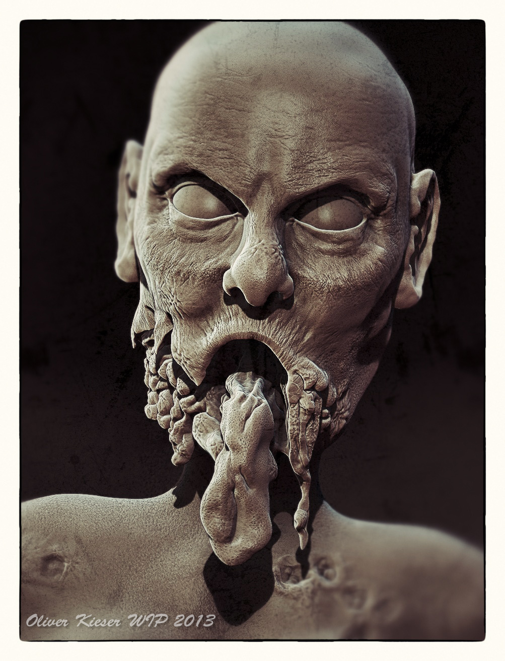 bin gerade an einer Zombie Büste dran hier ein erstes WIP soll noch Haare und Texturen bekommen