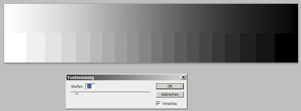 Dann davon eine Tontrennung mit 20 Stufen. Jetzt hast Du eine Graustufenskala bei der jede Stufe 5 m Höhenunterschied entspricht.