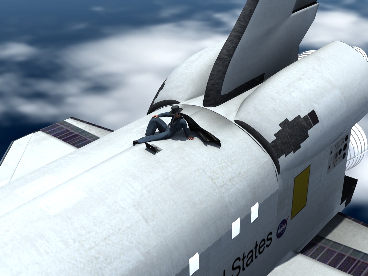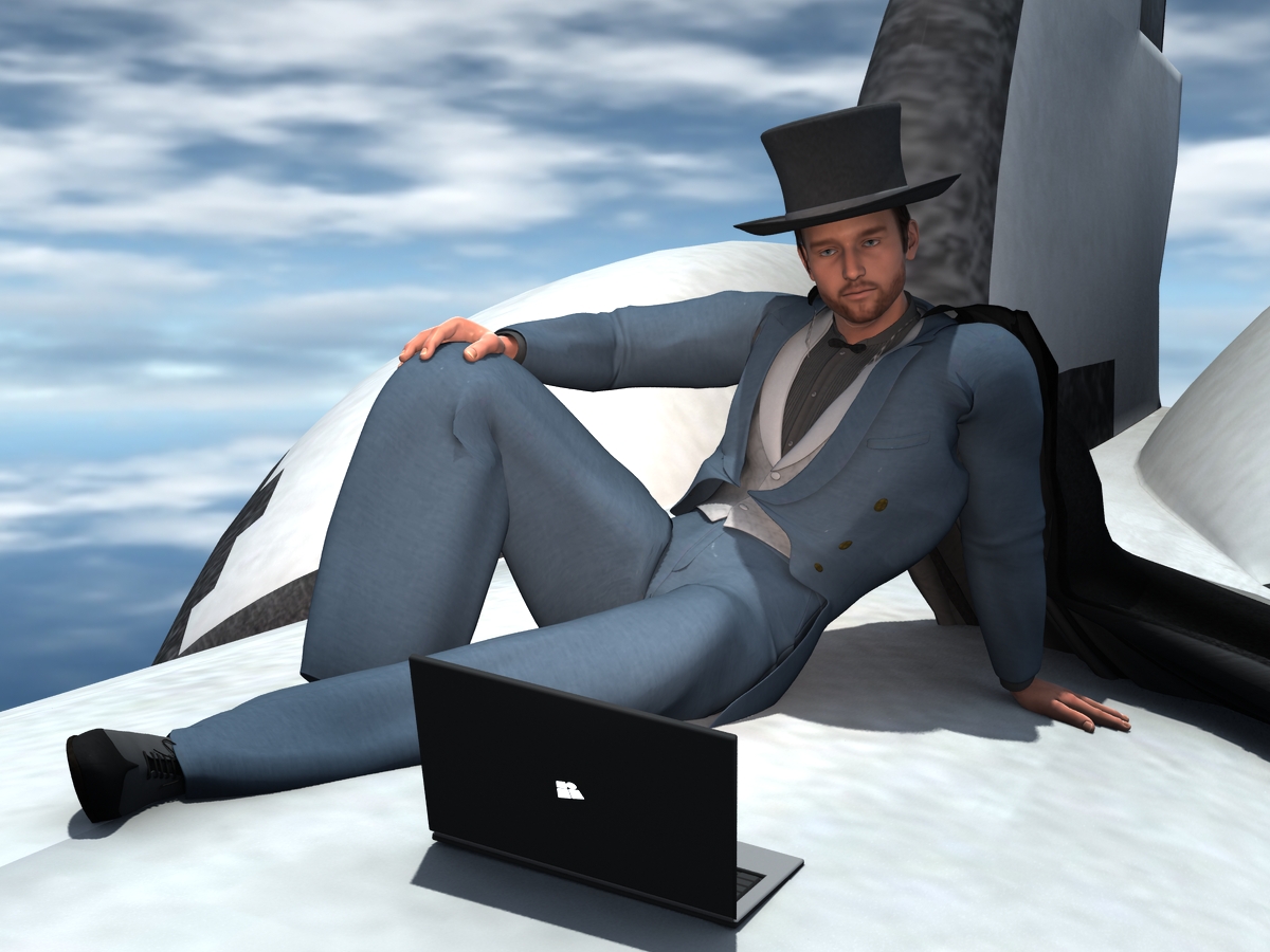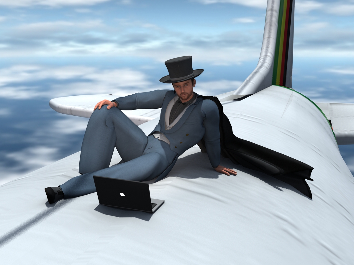 Dummerweise hatte ich dem Tuxedo schon eine andere Textur gegeben. Dunkel war aber auf dem Flugzeug zu dunkel. Um der Kleidung wieder das Original-Blau zu geben musste ich hier mit dem Surfacetab nach einem Blick in die cr2-Dateien mich zum Original-Texturen-Ordner hangeln und so wieder auftragen.