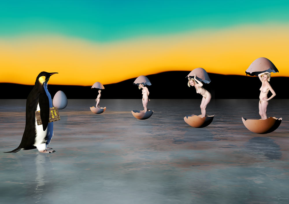 Und Du hast nicht irgendein Modell in beliebigen Posen genommen. Denn die Haltung der Dame muss ja genau zu den Eierschalen passen. Also hast Du viel Aufwand getrieben! Und das hat sich gelohnt. Toll.