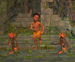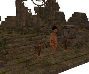 Die Kulisse der Animation besteht aus "Jungle Ruins (D9455)" und "Return to the Enchanted Forest (D14127)" beides von Stonemason. Die beiden Kulissen ergänzen sich sehr gut, finde ich.