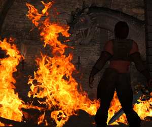Hiro 3 in "Silo for Hiro" mit Hammertail-Dragon. Burg ist underground-construction-kit von 3-d-c auf Renderosity.