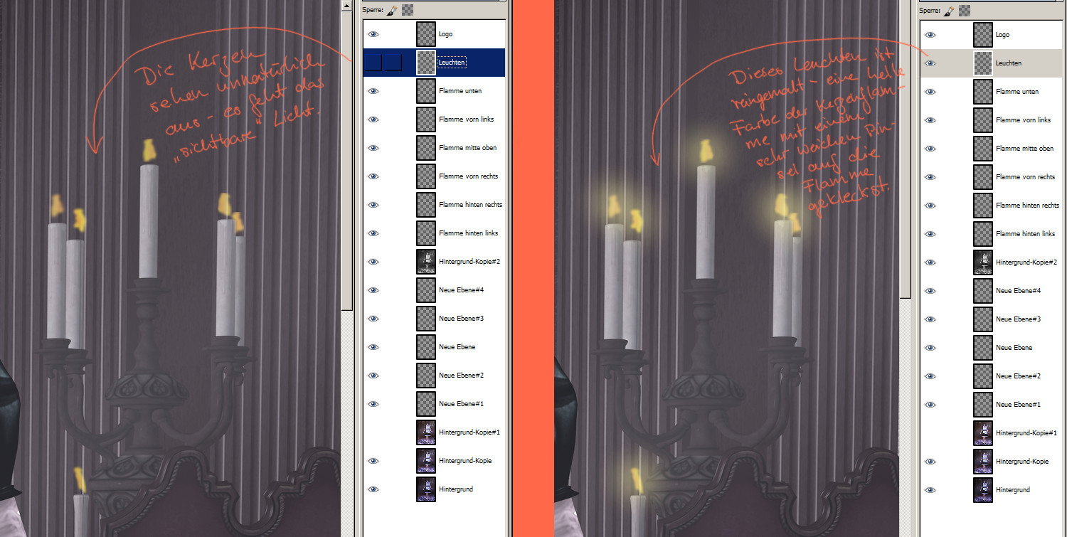 Außerdem sieht man den Halo, wenn die Flamme etwas überlichtet wird.