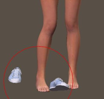 Schau doch einmal bitte nach, ob die Schuhe überhaupt einen Oberschenkelknochen haben. Der müsste auf Englisch Thigh heißen, jeweils mit Zusatz r oder l davor.