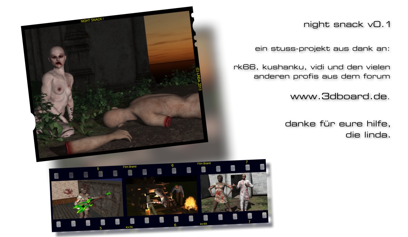 Da ich solche Produktionen bisher nur mit echten Menschen, echtem Licht und echten Kameras machte, kann ich natürlich (noch) nicht annäherd mit euch Profis mithalten.