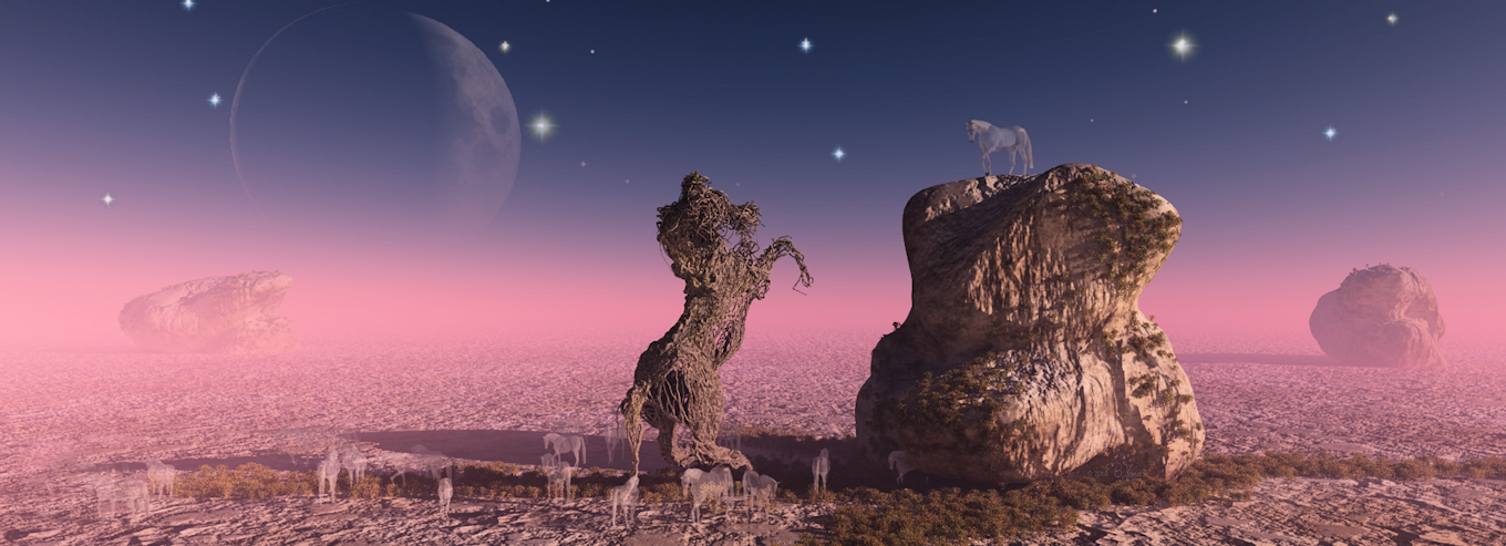 Hab mal wieder was Feines geschenkt bekommen, nämlich diese aus Efeuranken erstellte Pferd von Lutz Lehmann und das musste dann sofort in einem Render verkasematuckt werden ![]()