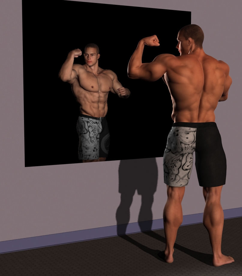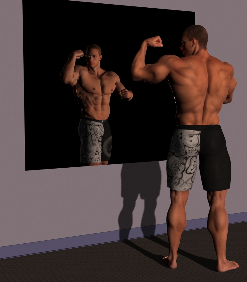 Das Blöde ist hier nur dass nur die Reflexion im Spiegel gewünscht ist, nicht aber das Licht selber an der Figur.