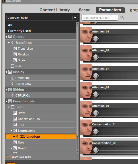 Ich weiß nicht ob Du das weißt oder versucht hast, aber bei meiner V6 habe ich inzwischen zumindest die Head-Morphs gefunden. Im Gegensatz zur V5, wo ich nur den Hauptordner Genesis2 unter Scene aktivieren muss, um auf der anderen Seite unter Parameters alle Morps angeboten zu bekommen, muss ich bei V6 unter Scene gezielt den Kopf anwählen. Dann bieten mir die Parameters auch dessen Morphmöglichkeiten an. Die Body-Morphs suche ich allerdings immer noch...