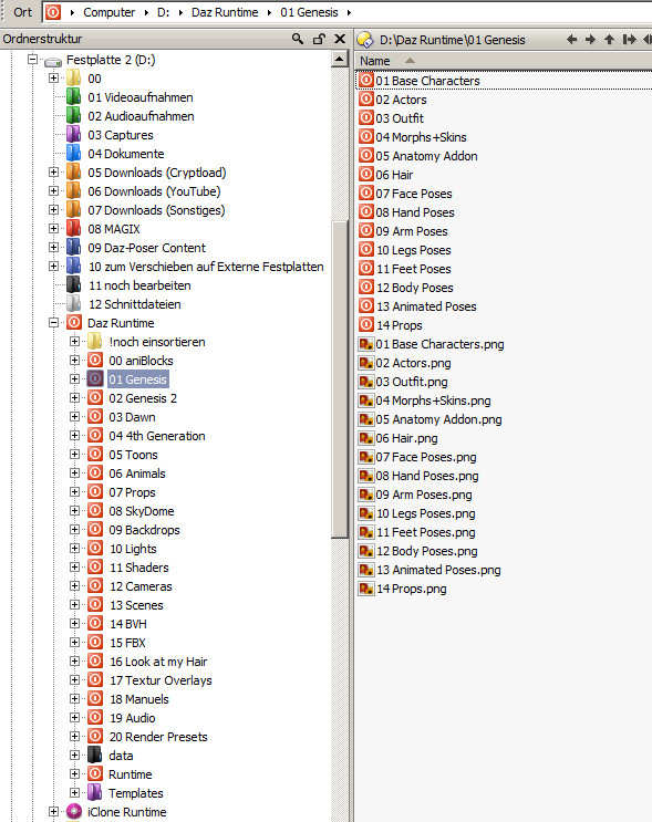 Ähhh... :S ...ok, nun muss ich zunächst die Datenstruktur begreifen. Fangen wir oben an. Was ist der Unterschied zwischen dem Ordner "My Library" (Eigene Dokumente) und "My DAZ 3D Library" (Öffentliche Dokumente) Brauche ich überhaupt beide und welcher ist nun relevant, wenn es ums Suchen installierter Contents oder das geplante Umstrukturieren geht?
