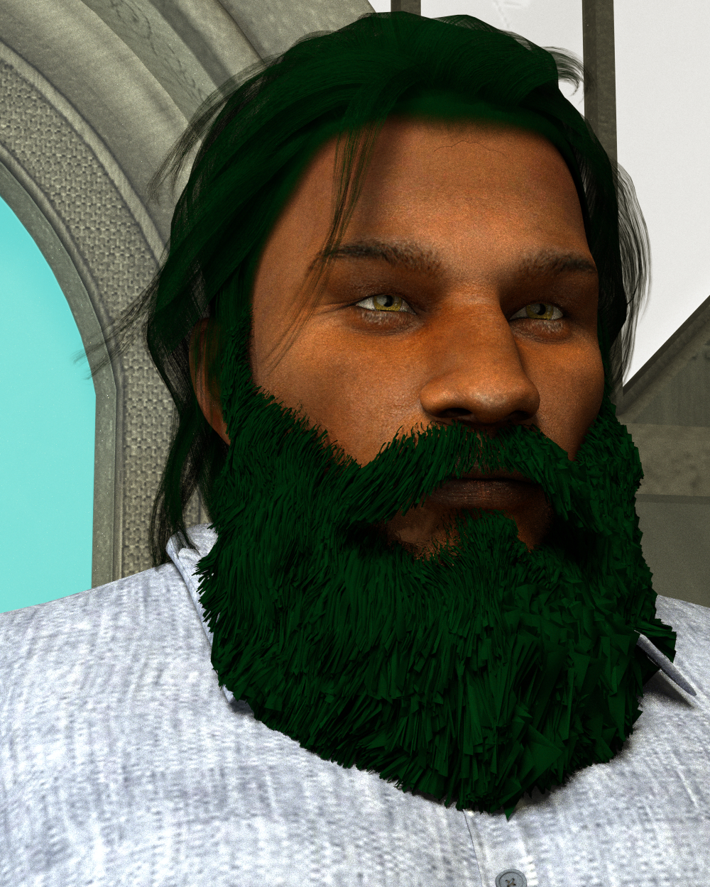 Tja, das Volk kann grüne Haare haben. :) Und den Bart hab ich schon ziemlich ent-struppt. durch ein bisschen viel Gemorphe waren da nämlich einzelne Haare dann doch fast eher Strähnen, da musste ich einiges an Feinheit reinpinseln.