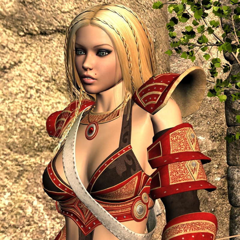 • Nachdem bei meinem Testbild "Überlebenskampf" - was ich nicht mehr bearbeiten kann,ich habs gar nicht abgespeichert gehabt,die Problematik Haare zu Sprache kam,hab ich mich meinem eigentlichen Projekt wieder zu gewandt und habe mich entschlossen,aller 23 Bilder der ersten Szene nocheinmal - es wäre dann das vierte Mal - neu zu machen.Ich habe jetzt Frisuren genommen,die ich bei jedem Posen besser gestalten kann,d.h.es rutschen keine Haare mehr in den Oberkörper oder in die Rüstung.Bedeutet nun aber auch,dass jedes Bild wesentlich länger dauern wird.Bild 01 und 02 sind aus der alten Serie,Bild 03 und 04 die neuen Figuren.