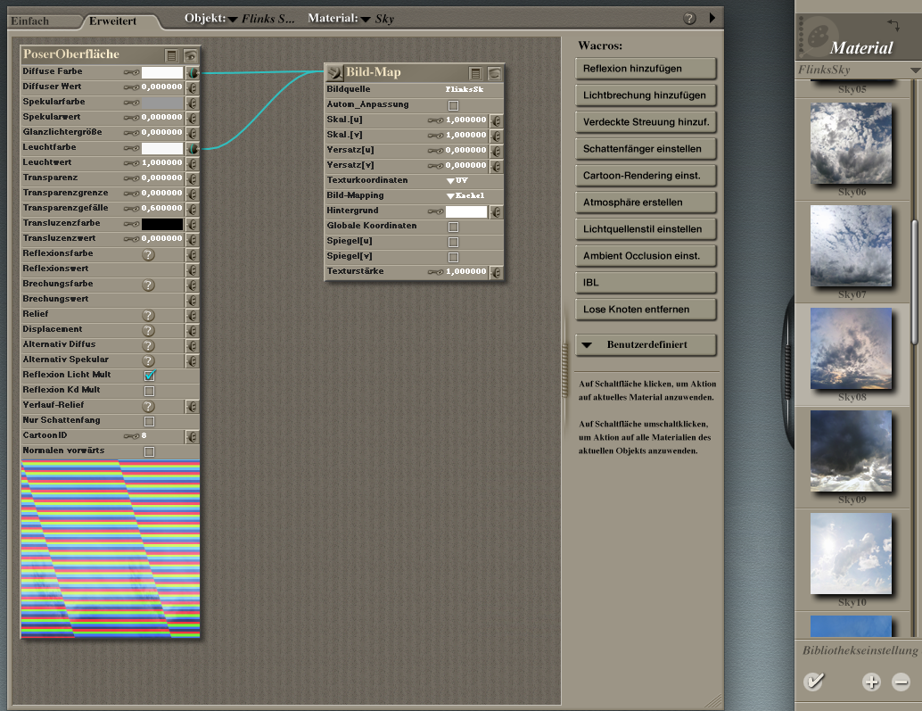 3) Wenn du auf das Augensymbol bei der Textur selbst klickst (neben dem Titel "Bild-Map"), wird das Bild dort auch so fehlerhaft angezeigt?