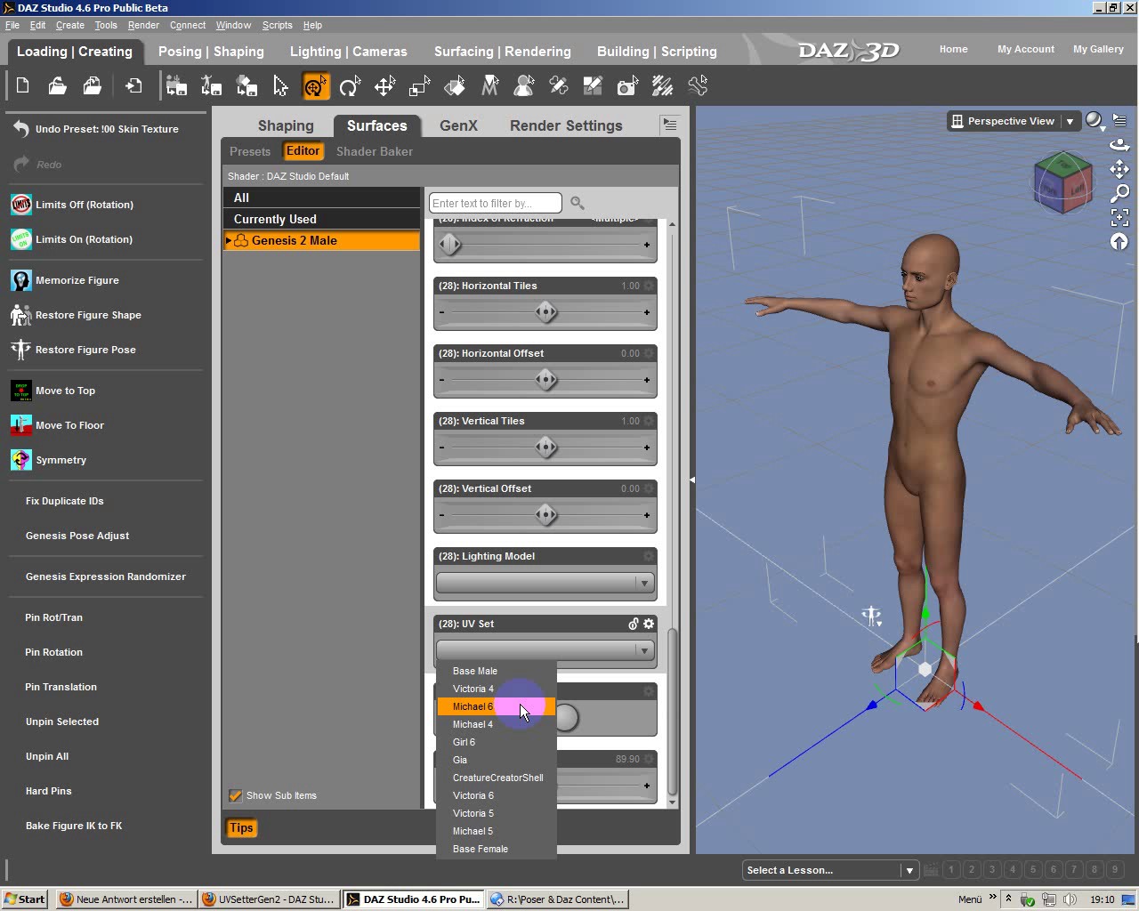 Möchte man also z.B. eine M4 Textur auf Genesis 2 haben, kann man es so machen: