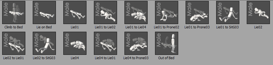 Motion "Climb to Bed" und Motion "Out of Bed" haben die gleiche "Liegelage". Doch die Zwischen-Motion "Lie on Bed" ist um 90° gedreht.