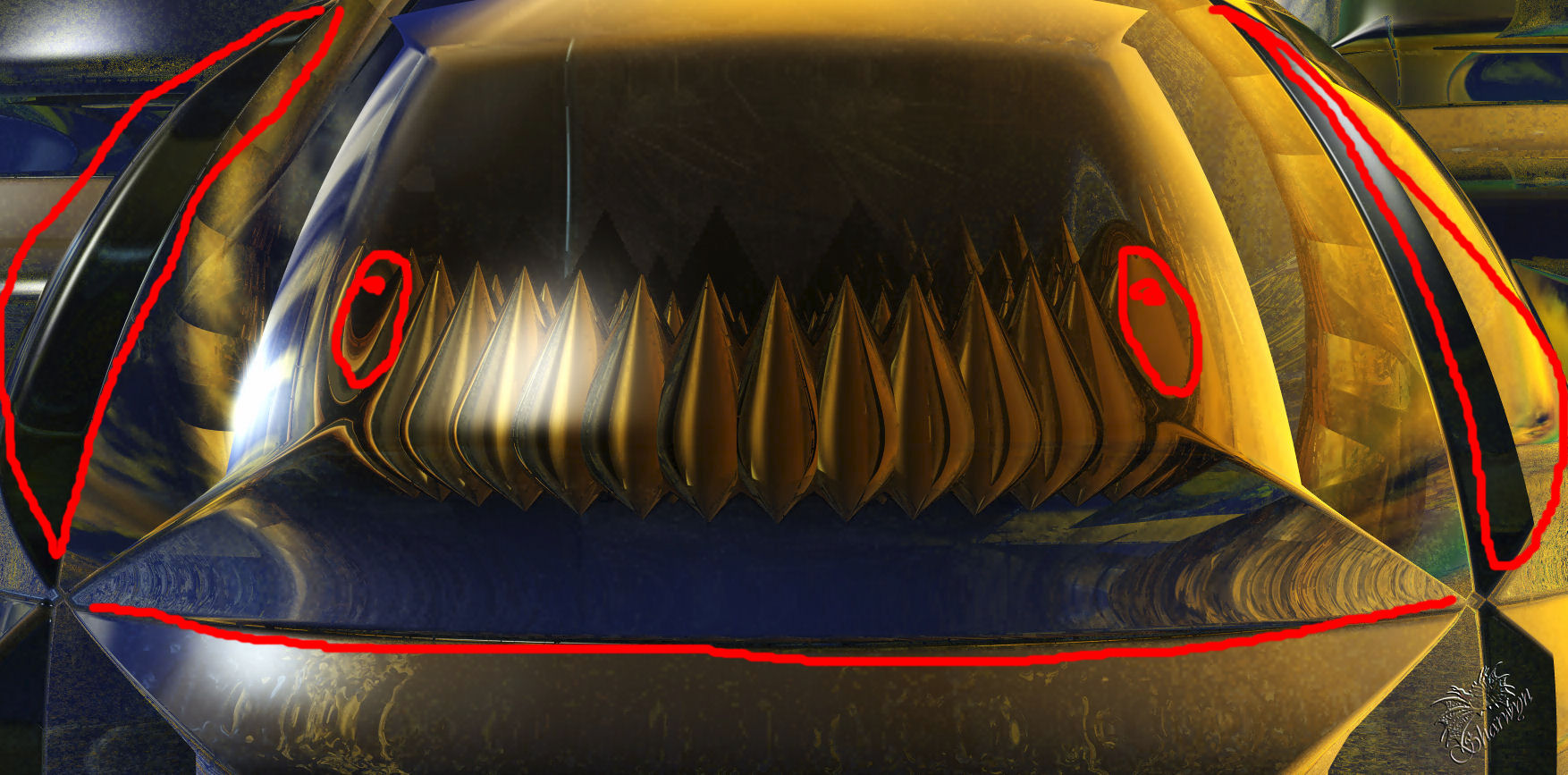 Bei mir war es eine Art Roboterkopf. Unten der breite Mund und irgendwie erkenne ich auch zwei Augen.