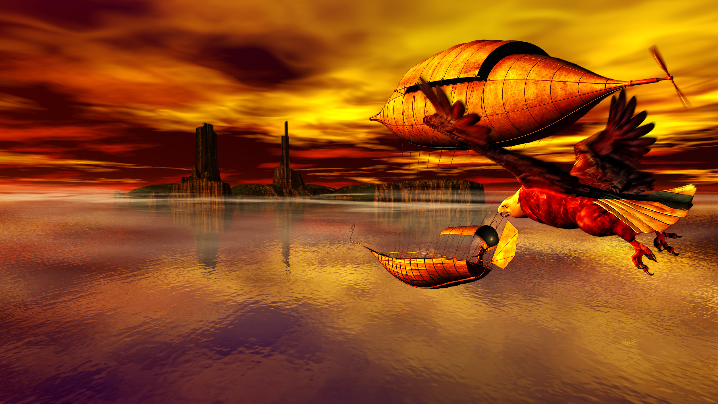 Irgendwann kam mir dann die Idee mit dem Luftschiff und dem Adler. Die hab ich dann in Poser gerendert und alles dann mit PS "zusammengebaut"....