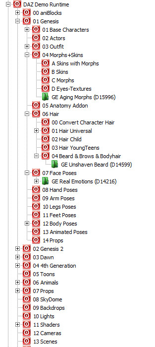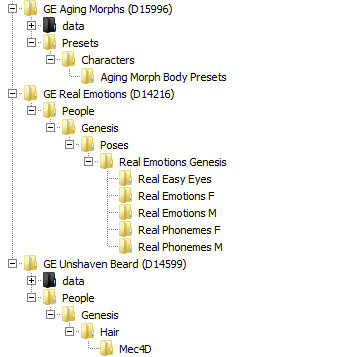 "Unshaven-Beard" ist eine Art "Haarteil", "Aging Morphs" sind "Morphs" und "Real Emotions" sind (Gesichts-)Posen.2. Genesis 2 hat mit diesen drei Produkten NICHTS zu tun, weder Male, noch Female.