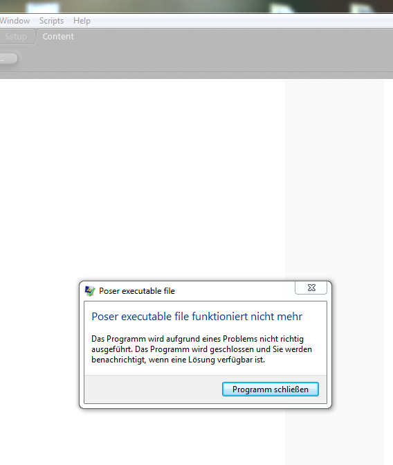 - es wird kein Content angezeigt und wenn man in das Fenster Content geht stürzt Poser ab.