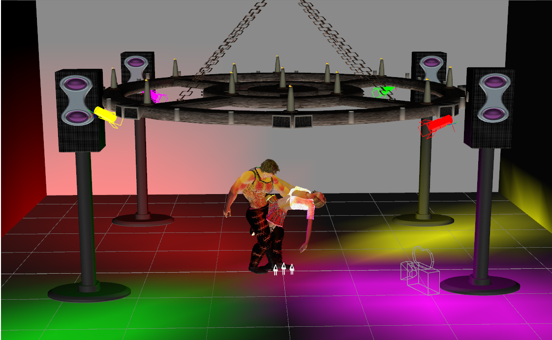 habe heute einde Diskothek entworfen. Bisher nur ein paar Planen als Wände und die Lichter durch selbstgebaute Scheinwerfer (Zyliner + Kugel mit Spotlight in verschiedenen Farben), die auf die Tanzfläche scheinen.