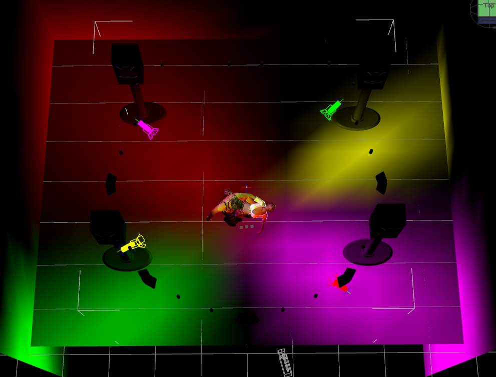 b) jetzt wollte ich dass die Scheinwerfer nicht nur Scheine, sondern auch Schatten werfen. Dummerweise ist, sobald ich auch nur für eines dieser Spotlights Schatten aktivere - und zwar egal welchen - die Szene sofort in "schwarzes Licht getaucht". Knalldunkel. Ein zusätzliches Distantlight würde aber die Farben zu sehr aufhellen. Wie kann ich das Ausknipsen des Lichtes vermeiden und trotzdem die Scheinwerfer Schatten werfen lassen?