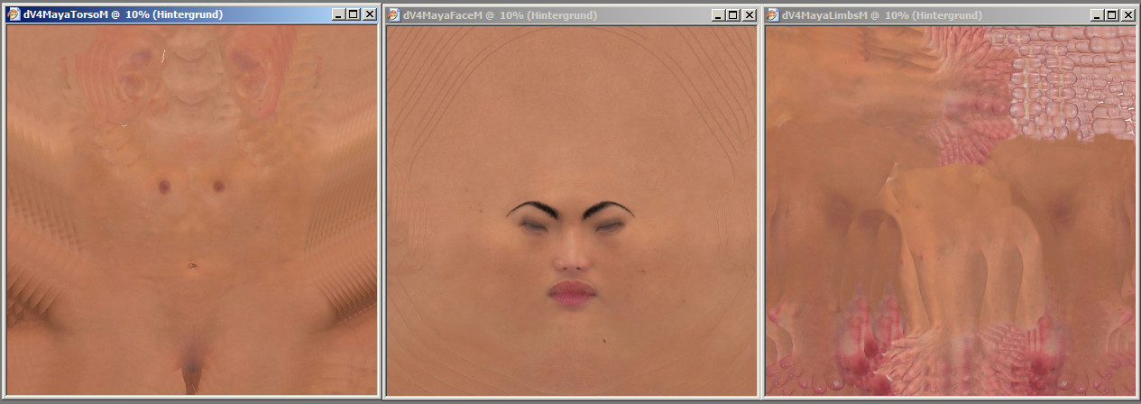 Als ich dann bei allen Texturen (Face, Body, Limbs) neu als png-bearbeitet abgespeichert habe und diese auf die Figur in DAZ Studio gelegt habe, ist mir aufgefallen, dass diese Risse in der Entfernung doch auch schon im DAZ Studio zu sehen sind. Aber die sind so winzig und eben nur aus der Ferne, dass sie mir da nicht aufgefallen sind.