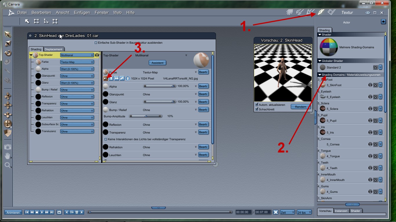 3. ggf. die betreffende Textur nachladen und/oder bearbeiten