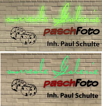 Wenn ich die Szene testrendere kommt sie wie oben. So sollte sie auch - mit leuchtender Schrift.