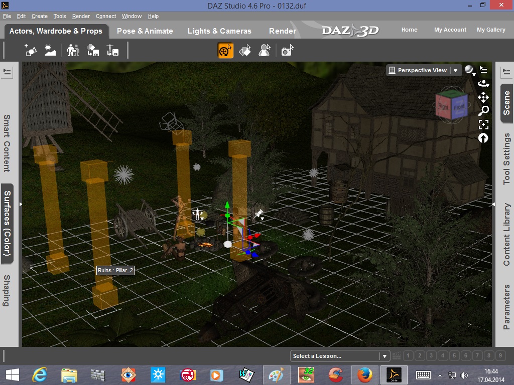 Da mein Projekt unglaublich viel Zeit in an Spruch nimmt,war ich im darauf bedacht,die Renderzeit zu kurz wie möglich zu halten,aber mit hohem Anspruch.Ich habe ein Haus als Ruine in einer sehr schönen Landschaft - leider habe ich kein Bild zur Verfügung,sondern nur den Link:http://www.renderosity.com/mod/freestuff/?item_id=73216. Das Arbeiten damit war wunderbar,man konnte es gut ausleuchten,die Etagen in dem Haus konnte man gut ausstatten usw. - Ich hatte das hier schon mal erwähnt.