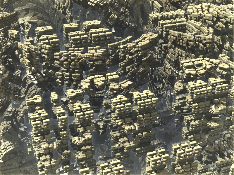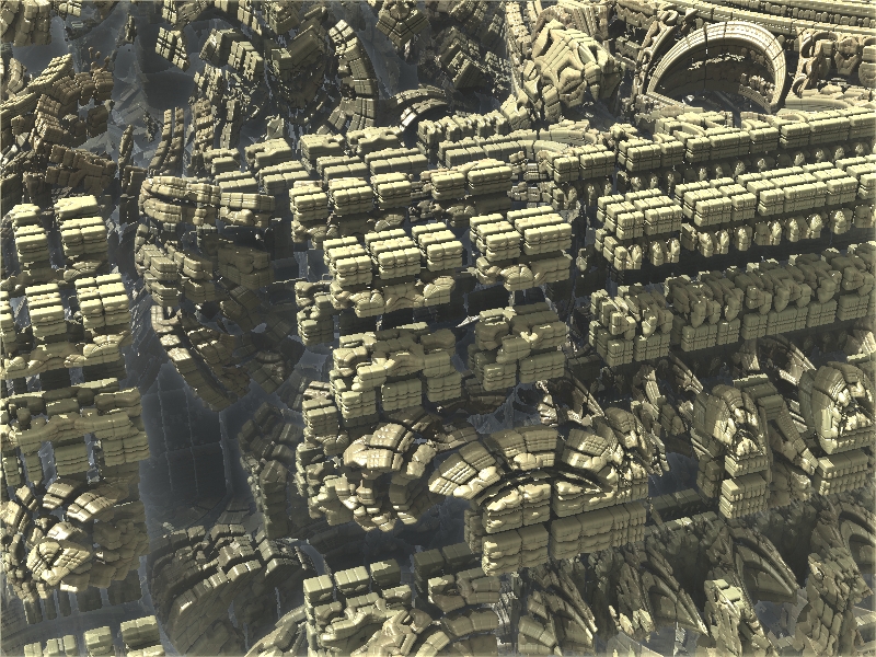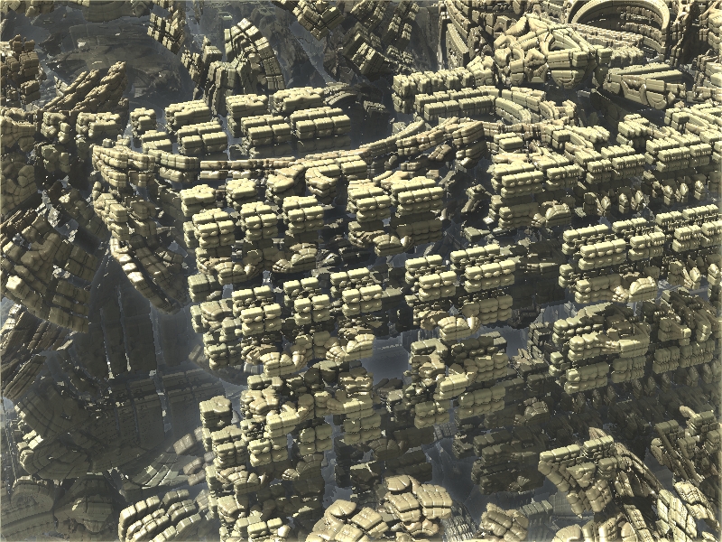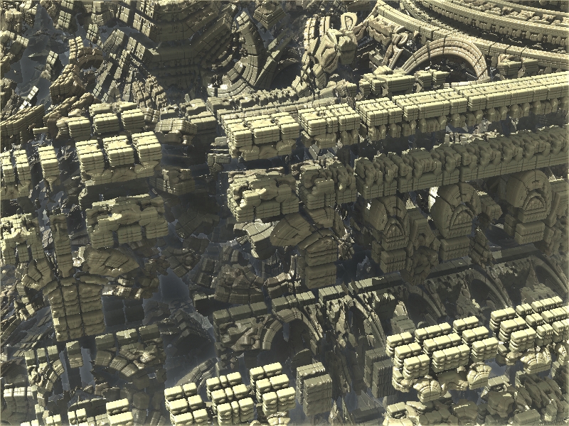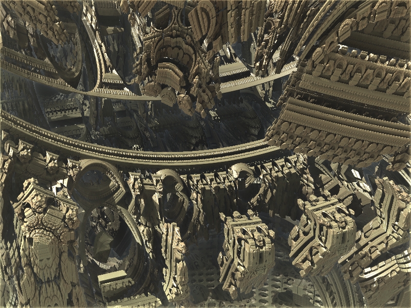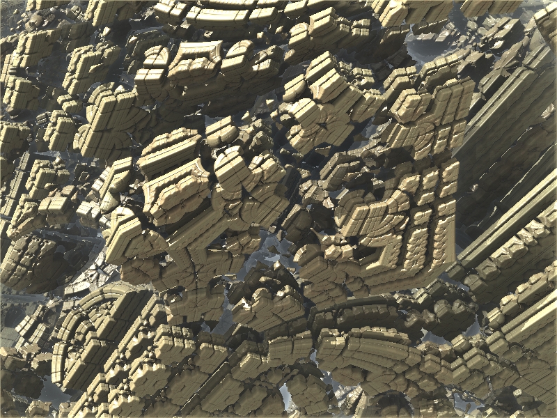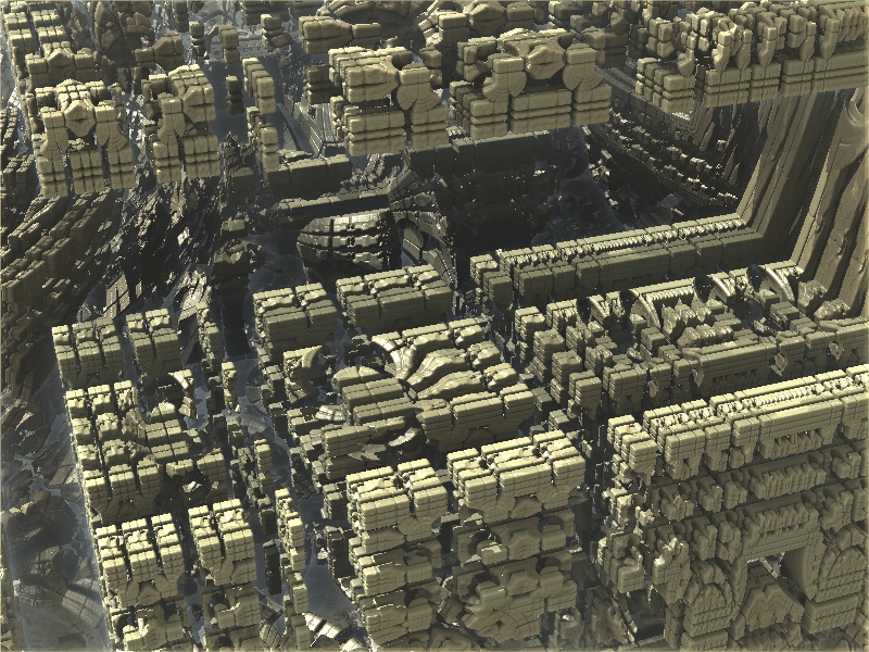 Hier mal ein Beispiel, welche Auswirkungen die Veränderung eines einzelnen Parameters auf das Fraktal haben kann. Manche sehen aus wie die abstrakte SciFi-Architektur einer futuristischen Stadt.