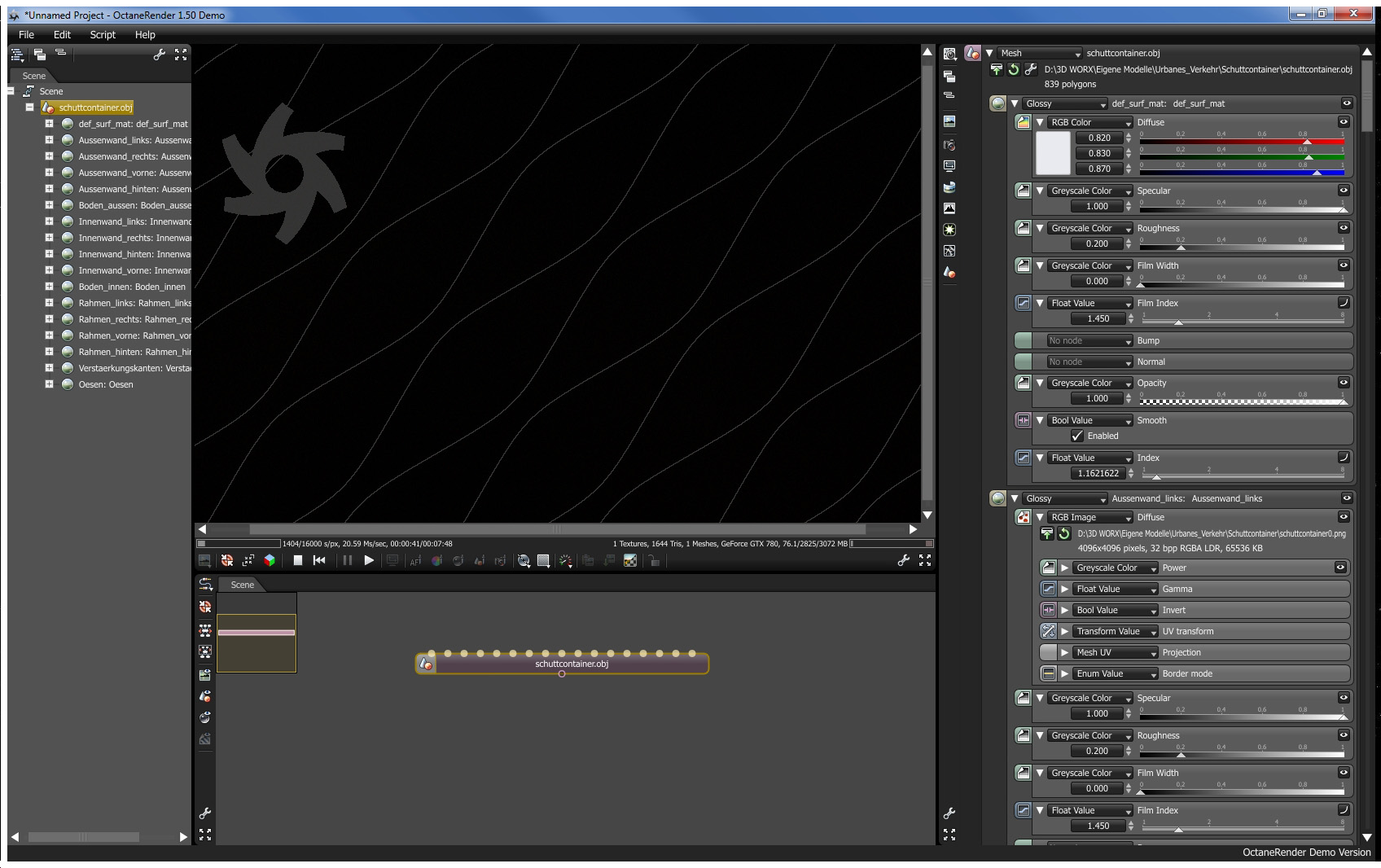 habe mir mal die Demo von Octane 1.5 gezogen und installiert. So weit so gut, habe probeweise ein Modell mit korrekt UV gemappter Textur herein geholt, bekomme auch die Liste der einzelnen Shading Domains etc. angezeigt - nur das Voransichts-Feld bleibt schwarz...