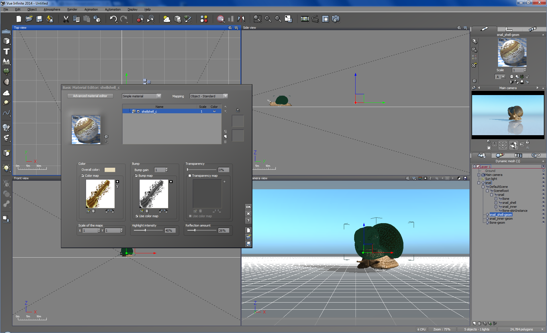 Eine von Barry Mashall geriggte Schnecke die Martin Lubich (www.loramel.net) in Blender erstellt hat. Sie liegt als Vue 9.5 vob, als 3ds und als dae format in dem Downloadpaket vor.