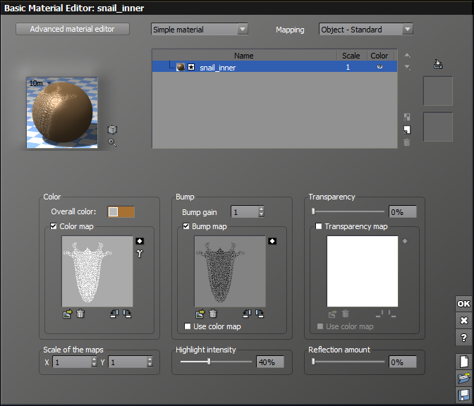Für die Shell kannst Du Dir dann aus dem Texturenorder des runtergeladenen DAE zip im Unterordner Linear ein Muster aussuchen und einladen. Die Bumbmap dazu findest Du ebenfalls im Texturenordner. Für die Corpus habe ich die SSS Map und die Bump map verwendet und die Farbe nach belieben eingestellt und dann einfach im Translucency Tab das Subsurface Scattering aktiviert. Das ist alles.